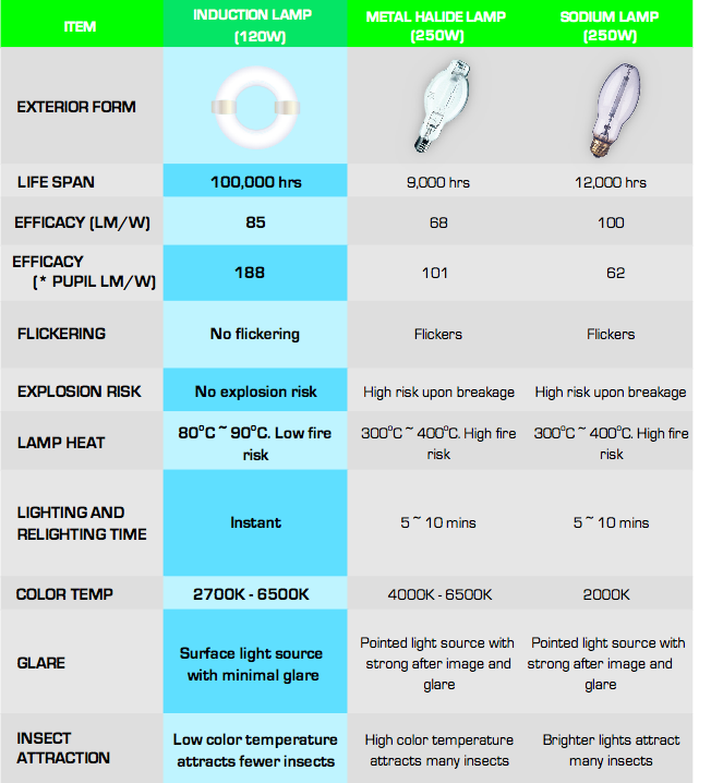 Induction Lamp vs Metak Halide Lamp vs Sodium Lamp: