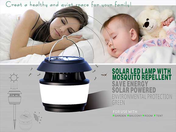 • Variable frequency to repel mosquito effectively Auto powered by solar cell, Auto turn on at night.