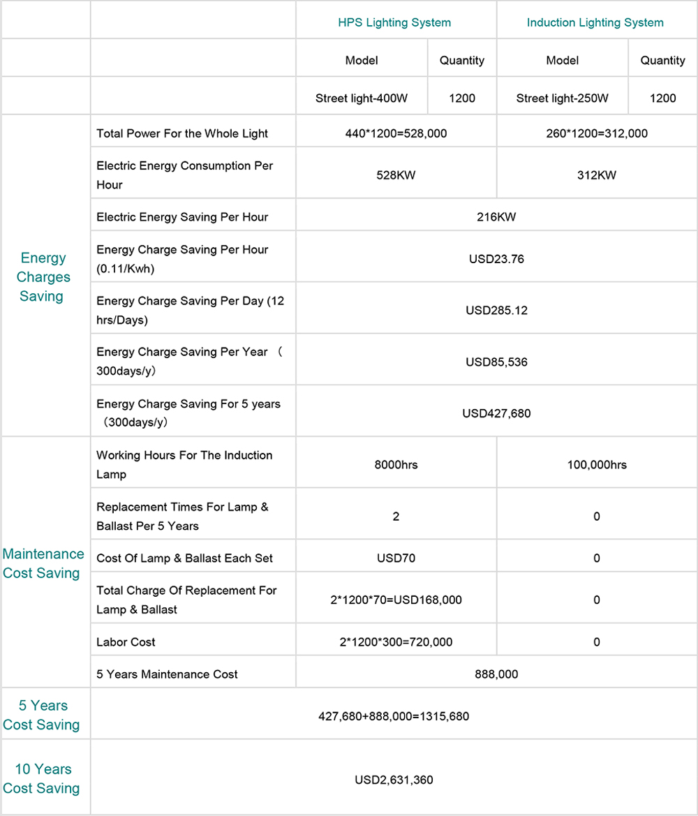 2. Efficiency Producing 150 pupil lumens of light for each watt of energy, induction lamps offer energy savings of 50%, compared to conventional sodium/metal halide.